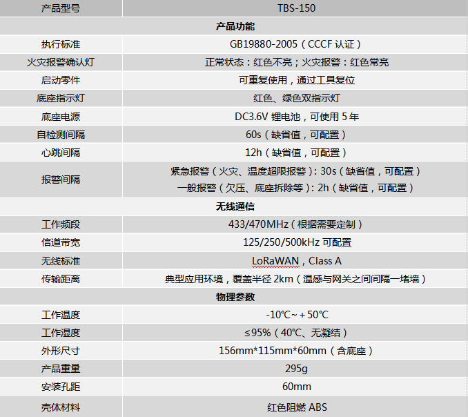 TBS-150 无线手动报警按钮由自主研发的 LoRaWAN 无线底座和独立式手动报警按钮组成,独立安装,无需布线,无线底座具备远距离无线传输功能,可大幅提高消防施工效率和智慧化水平。当人工确认火灾发生后,按下手动按钮上的有机玻璃片,触发手动按钮报警,报警信号无线远程传输到监控平台,方便监控人员及时知晓火灾报警消息并处理。